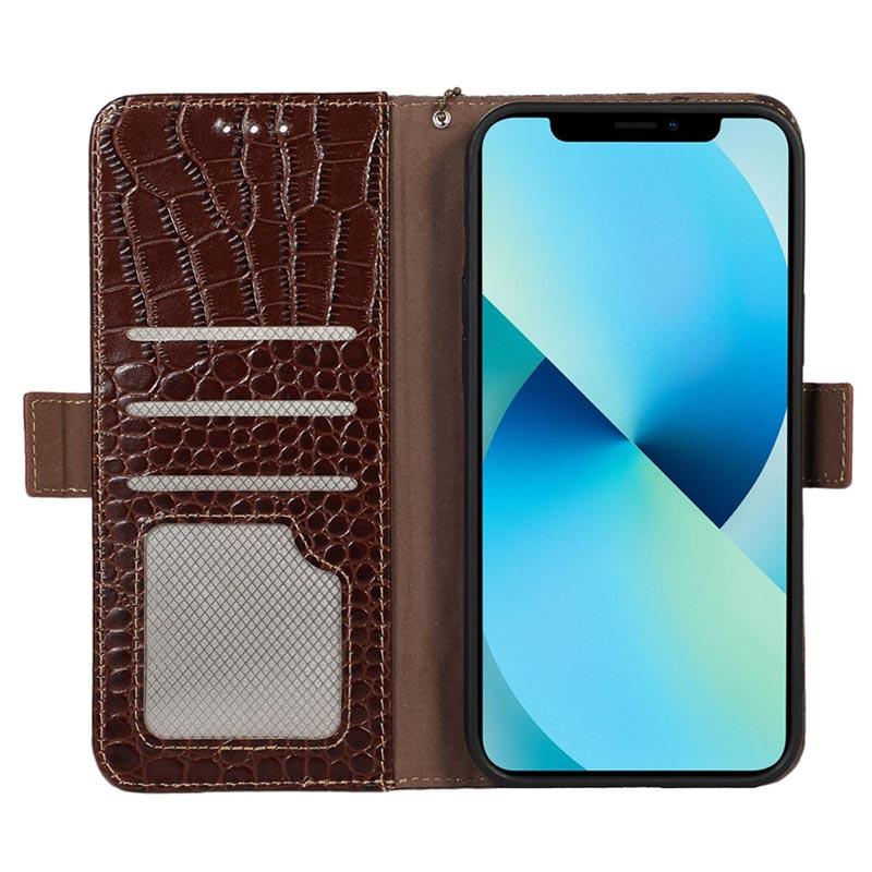 Bolsa de Pele Tipo Carteira Crocodile com RFID para iPhone 14