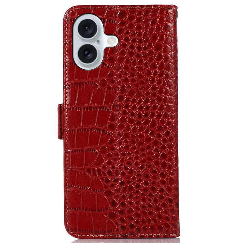 Bolsa de Pele Tipo Carteira Crocodile com RFID para iPhone 16 Plus - Vermelho