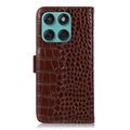 - Caixa de couro da carteira da série Crocodile para Motorola Edge 60 Fusion