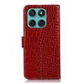 - Caixa de couro da carteira da série Crocodile para Motorola Edge 60 Fusion