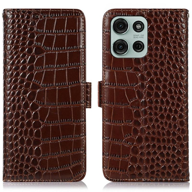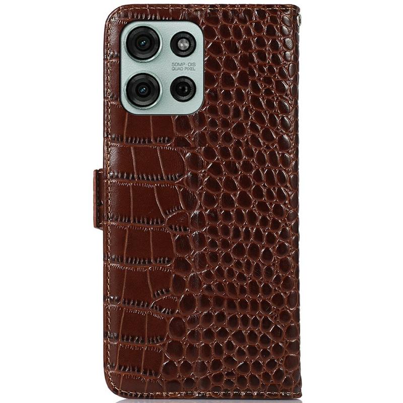 Bolsa de Pele Tipo Carteira Crocodile com RFID para Motorola Moto G75