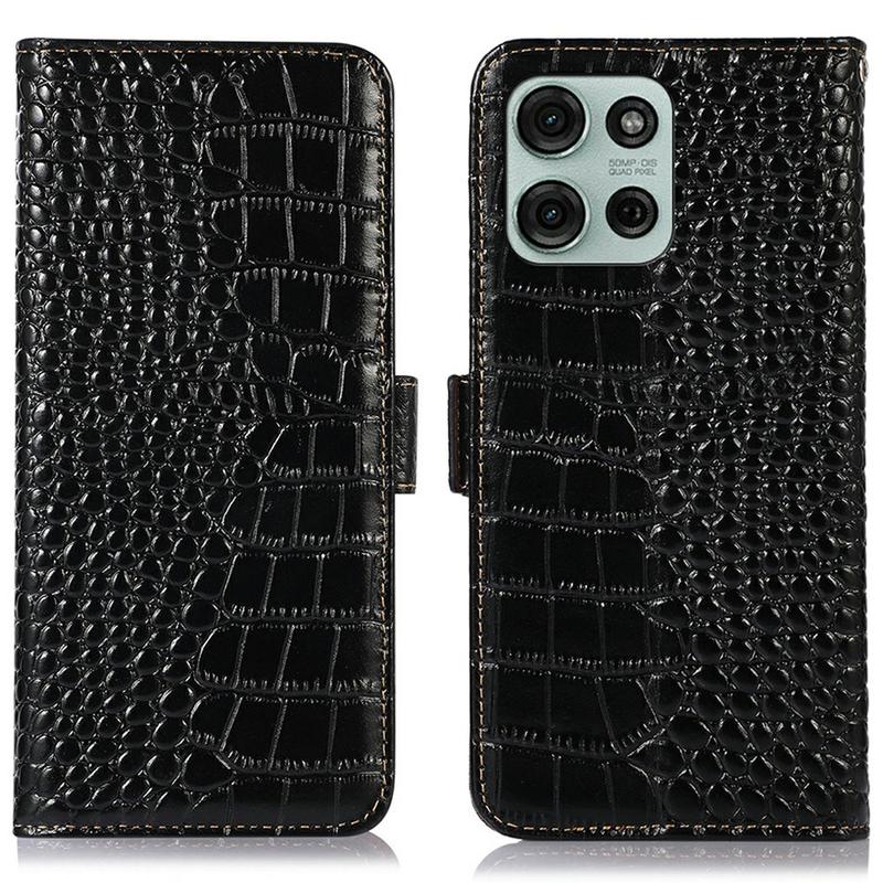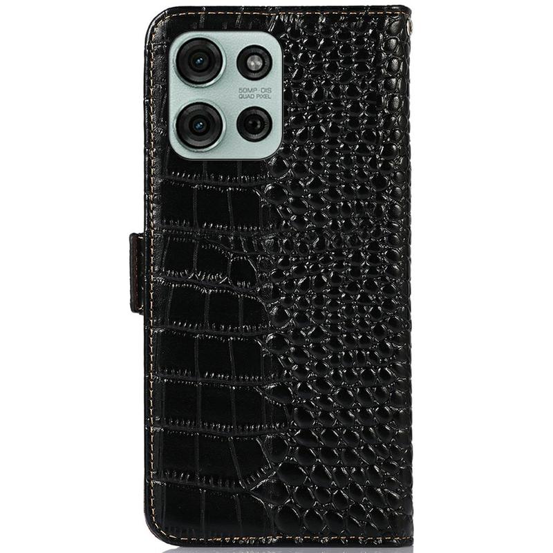 Bolsa de Pele Tipo Carteira Crocodile com RFID para Motorola Moto G75