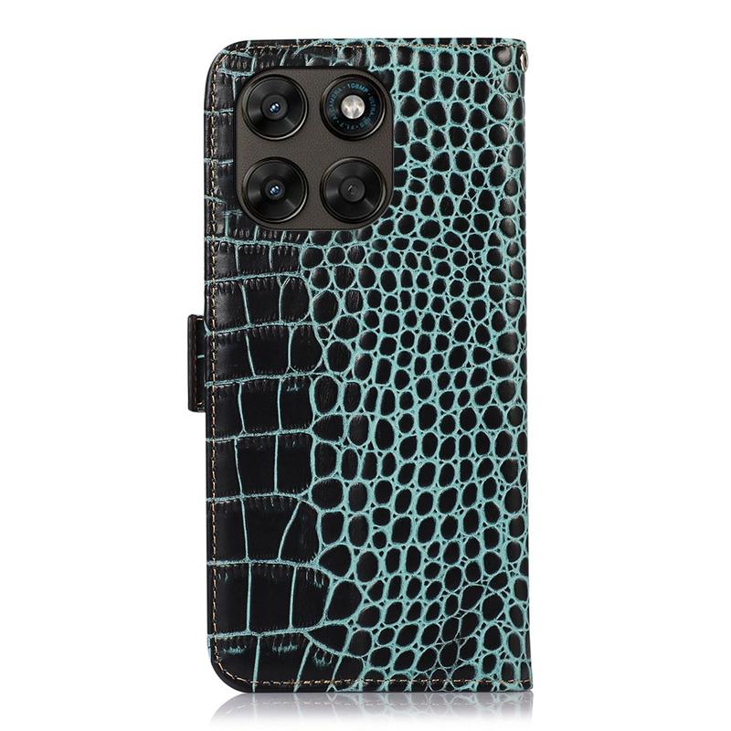 Bolsa de Pele Tipo Carteira Crocodile com RFID para Motorola Moto G77, Moto G67