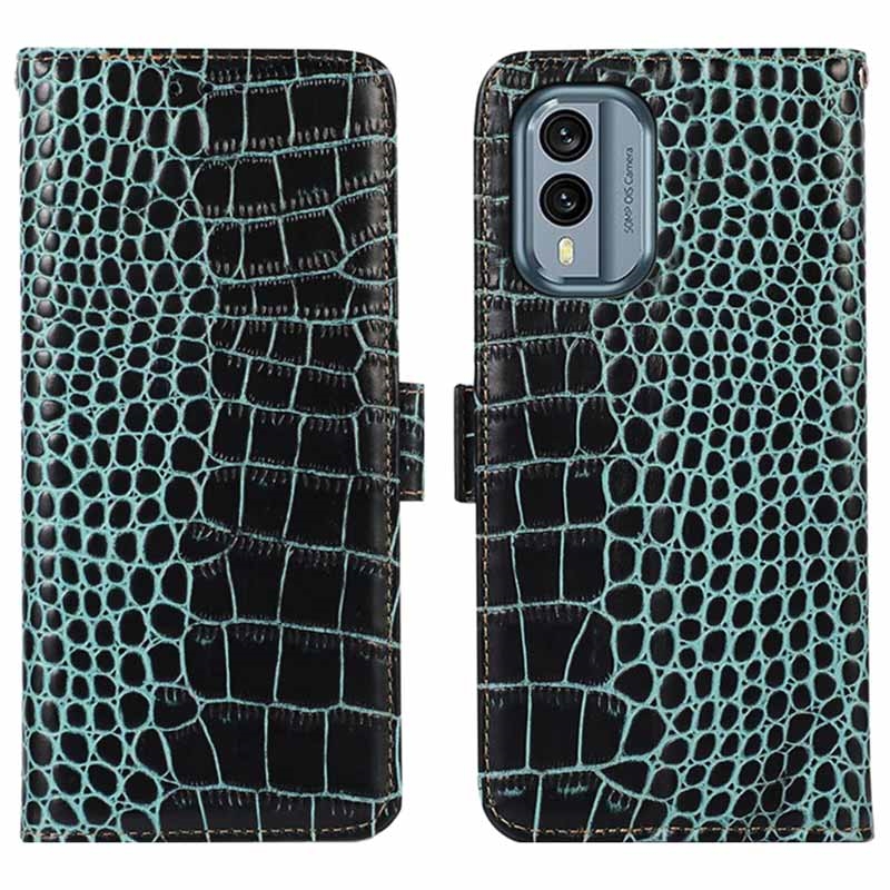 Estilize a aparência do seu Nokia X30 com esta capa de couro tipo carteira excepcional com um padrão de pele de crocodilo. Equipado com vários slots de cartão, compartimento de dinheiro e tecnologia de bloqueio de RFID, ele substituirá efetivamente sua carteira. O fecho magnético protege o estojo e o design inteligente permite o uso como suporte.