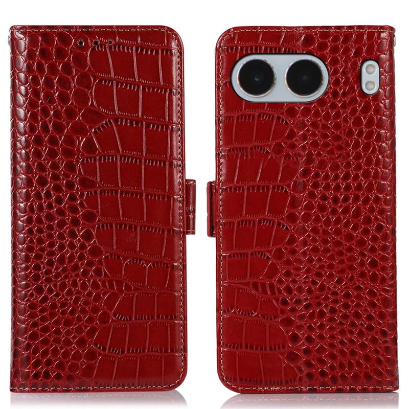 • Bolsa de Pele Tipo Carteira Crocodile com RFID para OnePlus Nord 4