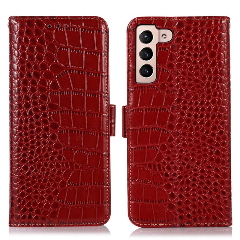 • Bolsa de Pele Tipo Carteira Crocodile com RFID para Samsung Galaxy S23 5G