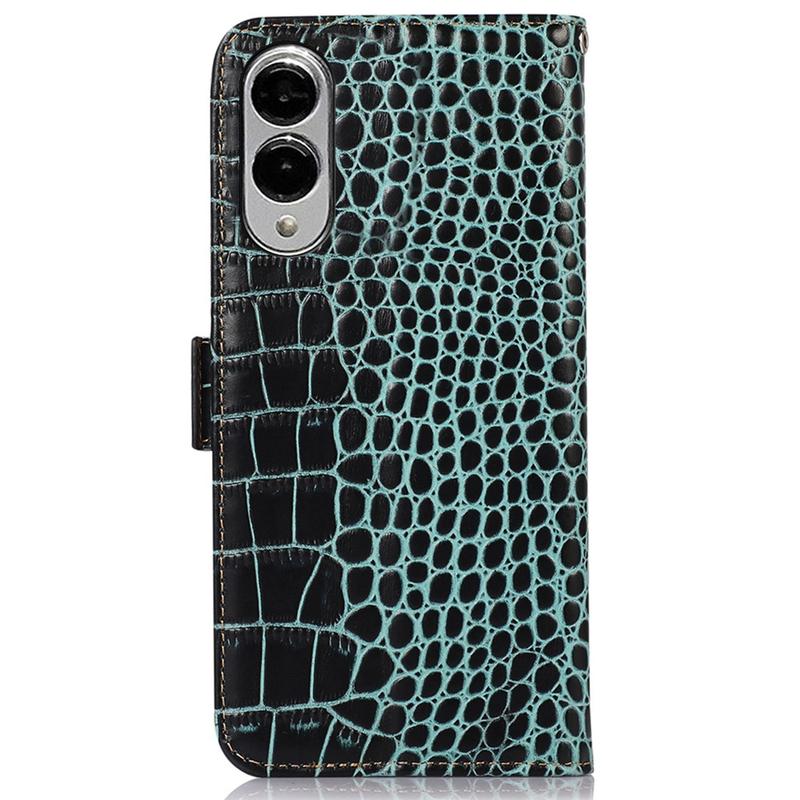 Bolsa de Pele Tipo Carteira Crocodile com RFID para Samsung Galaxy S25 Edge