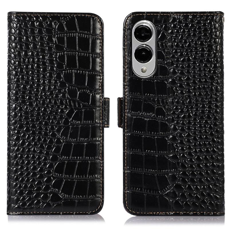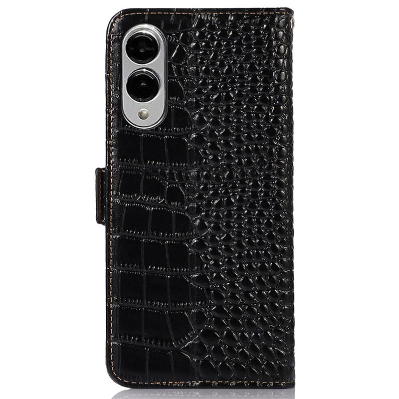 Bolsa de Pele Tipo Carteira Crocodile com RFID para Samsung Galaxy S25 Edge