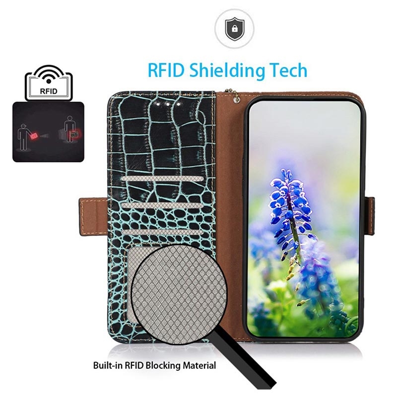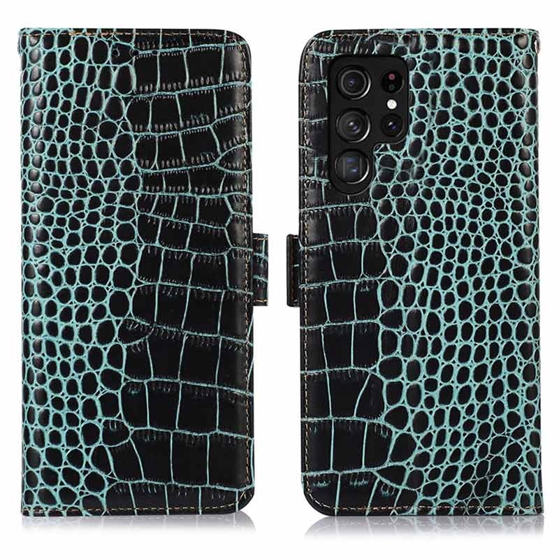 Bolsa de Pele Tipo Carteira Crocodile com RFID para Samsung Galaxy S26 Ultra