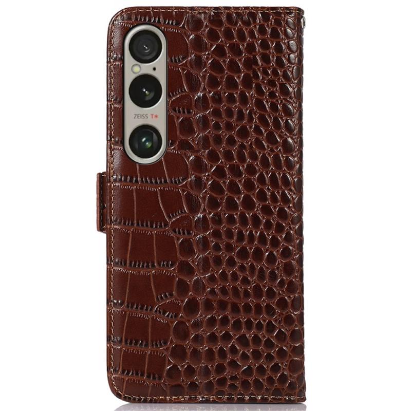 Bolsa de Pele Tipo Carteira Crocodile com RFID para Sony Xperia 1 VI