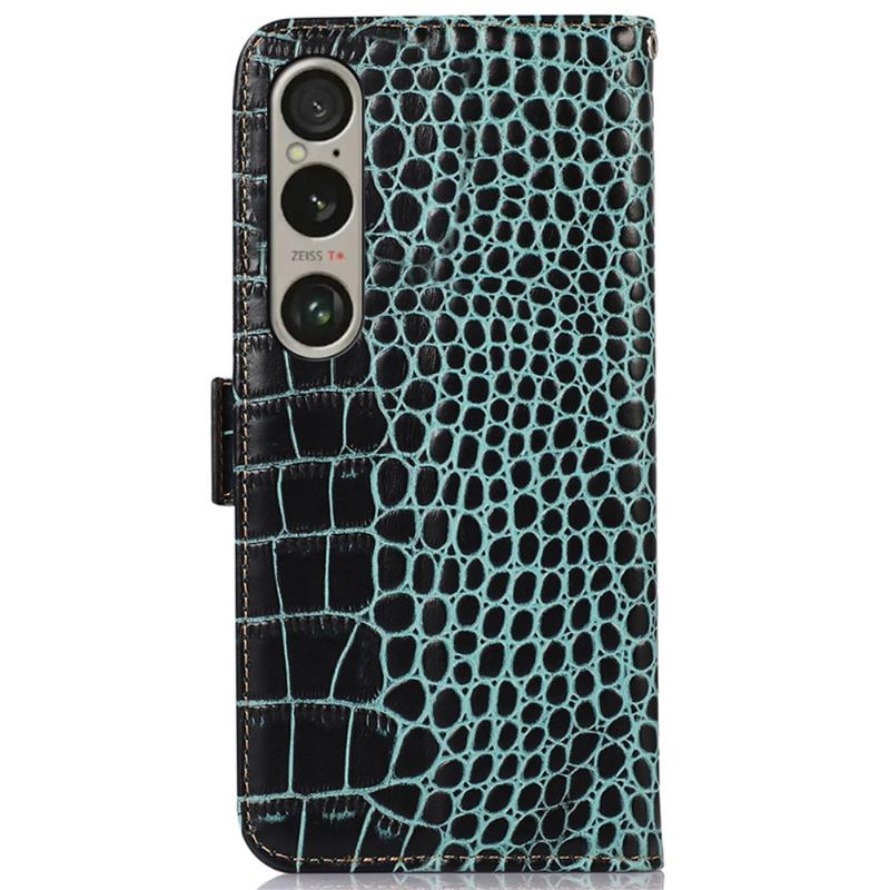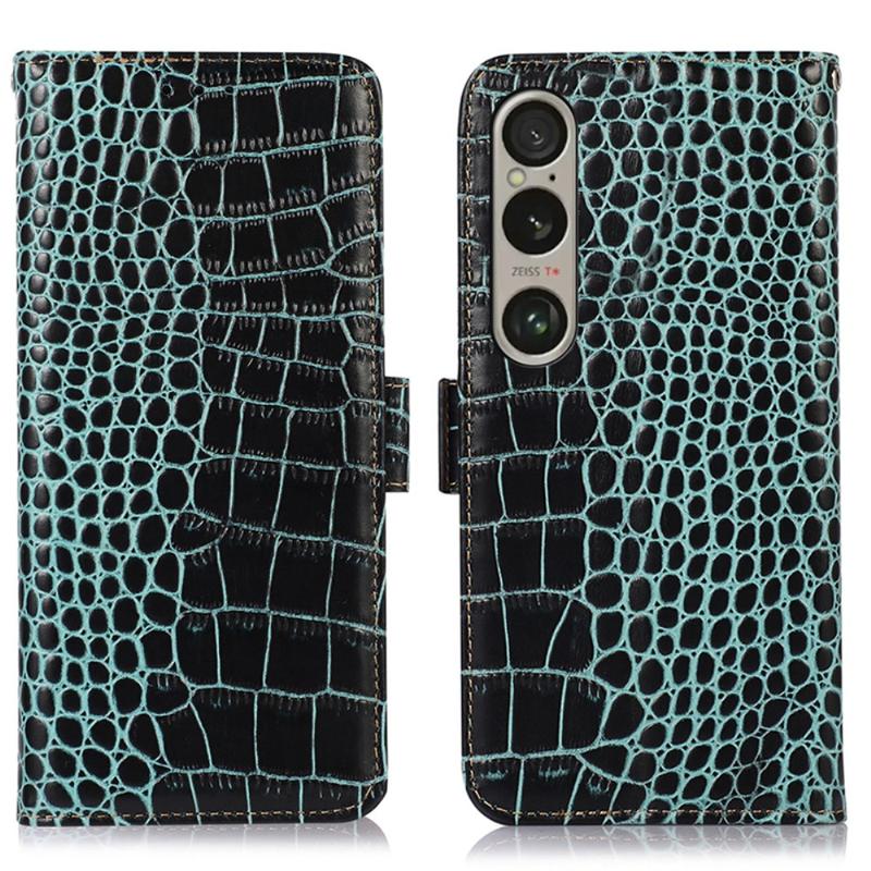 Bolsa de Pele Tipo Carteira Crocodile com RFID para Sony Xperia 1 VI