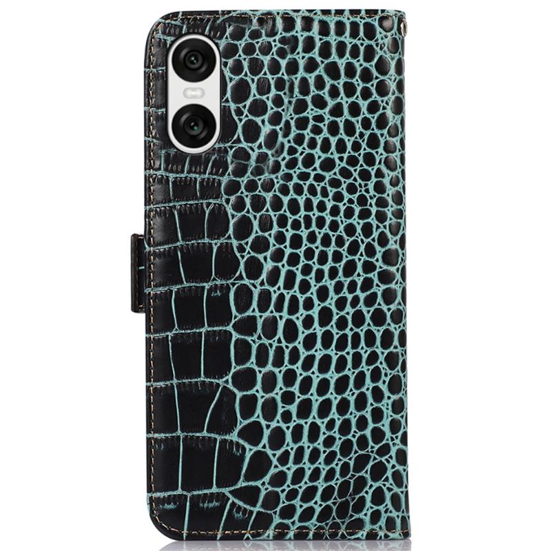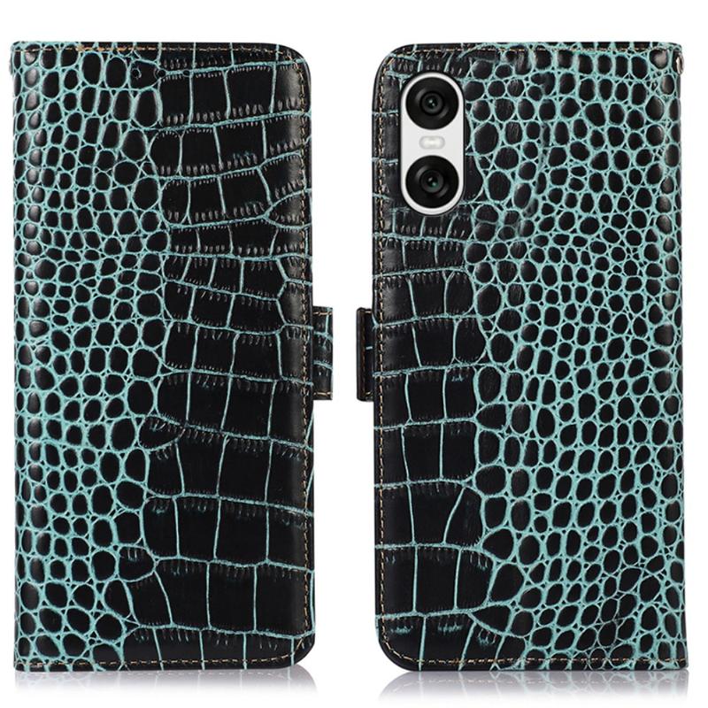 Bolsa de Pele Tipo Carteira Crocodile com RFID para Sony Xperia 10 VI