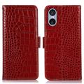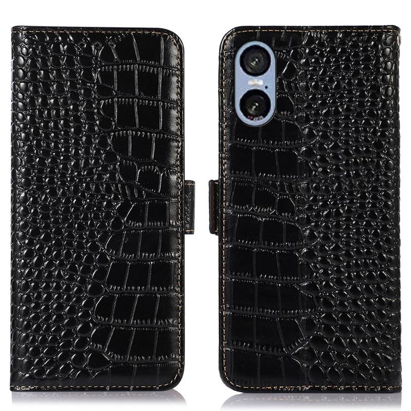- Caixa de couro da carteira da série Crocodile para Sony Xperia 5 VI