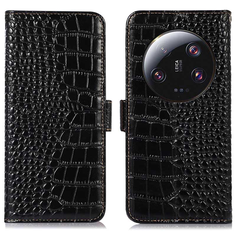 Bolsa de Pele Tipo Carteira Crocodile com RFID para Xiaomi 13 Ultra