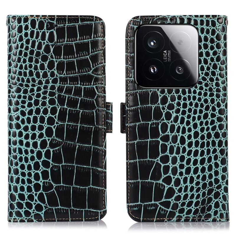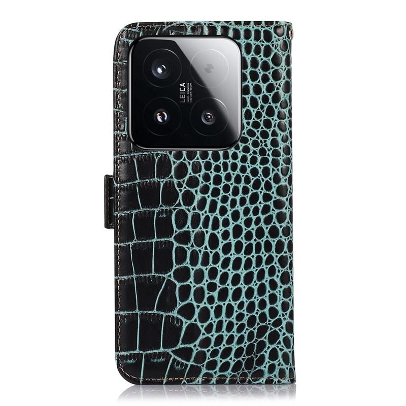Bolsa de Pele Tipo Carteira Crocodile com RFID para Xiaomi 15T