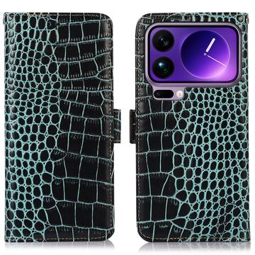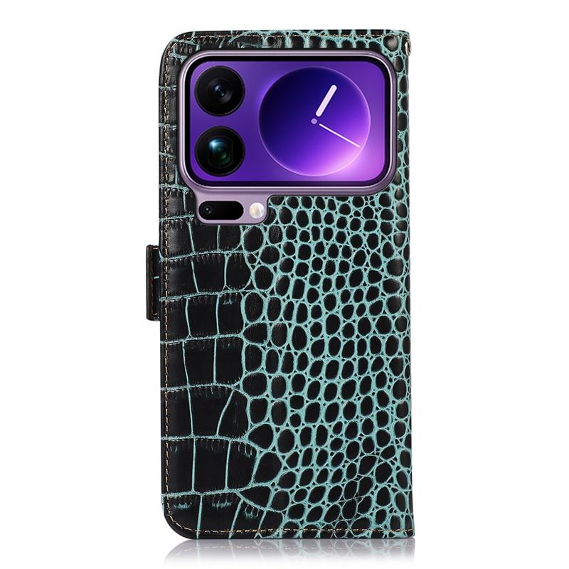Bolsa de Pele Tipo Carteira Crocodile com RFID para Xiaomi 17 Pro