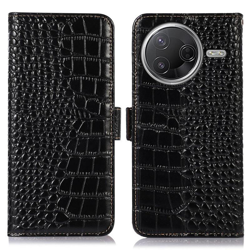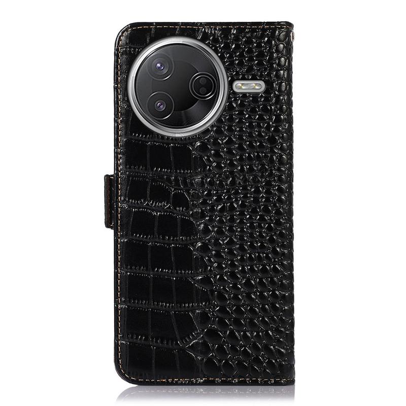Bolsa de Pele Tipo Carteira Crocodile com RFID para Xiaomi Poco F7 Pro