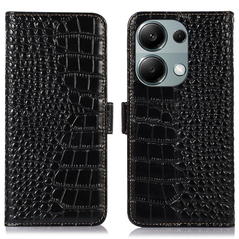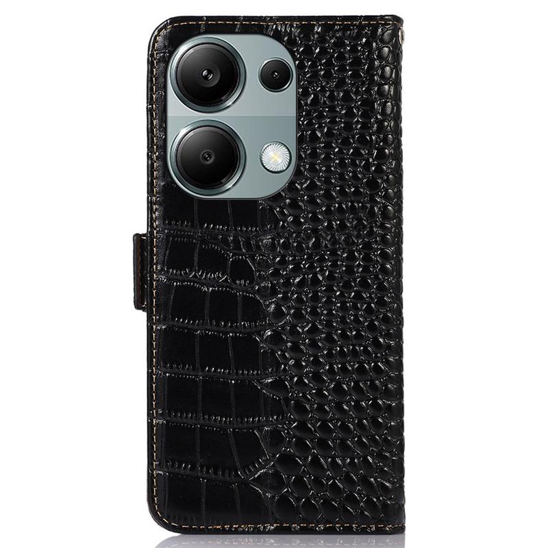 Bolsa de Pele Tipo Carteira Crocodile com RFID para Xiaomi Redmi Note 13 Pro 4G, Poco M6 Pro