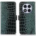 Bolsa de Pele Tipo Carteira Crocodile com RFID para Xiaomi Redmi Note 14 Pro 5G, Poco X7