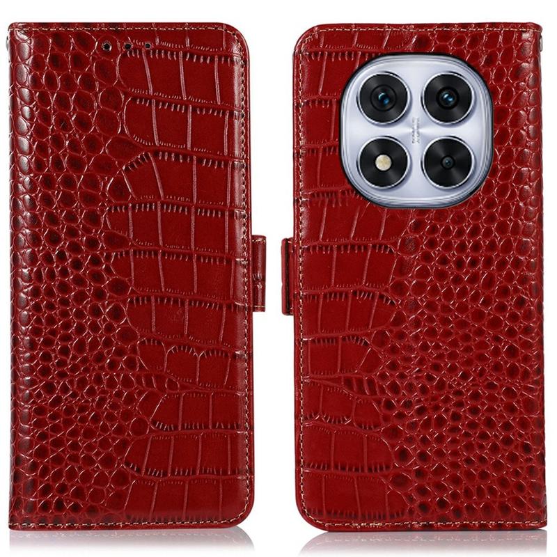- Caixa de couro da carteira da série Crocodile para Xiaomi Redmi Note 14 Pro 5G, Poco X7
