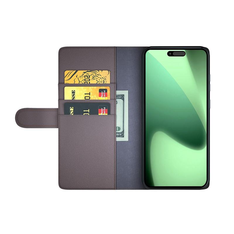 - Bolsa de pele tipo carteira para o iPhone 17 Pro Max