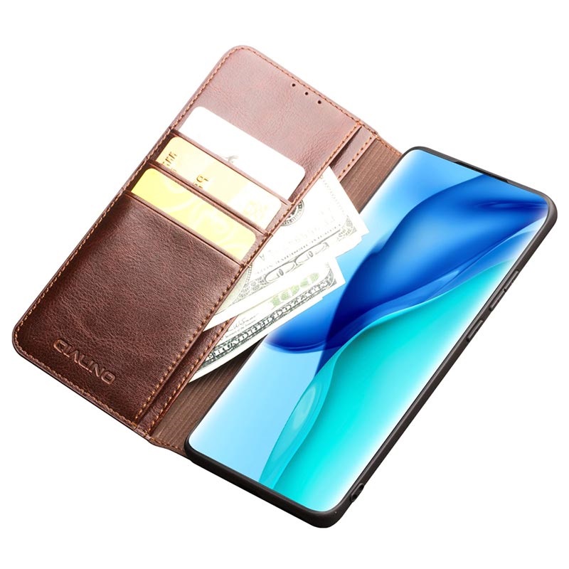 A bolsa tipo carteira em pele Qialino Classic é uma armadura elegante para o seu Huawei P50.