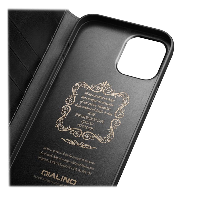 - Contemple a bolsa estilo carteira de qualidade superior Qialino Classic para o seu iPhone 13 Pro Max