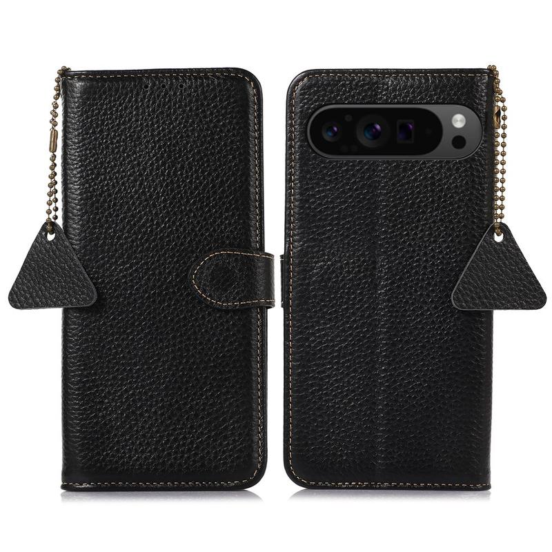- Estojo de couro tipo carteira com camada de bloqueio de RFID para Google Pixel 9 Pro XL