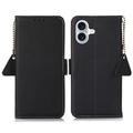 • Bolsa de Pele Tipo Carteira com RFID para iPhone 16 Plus