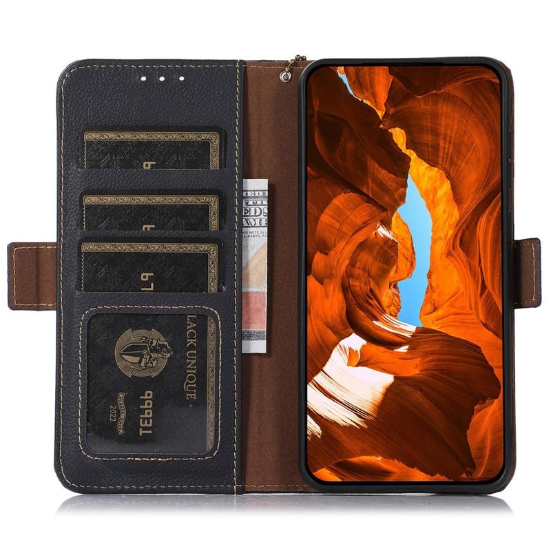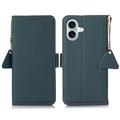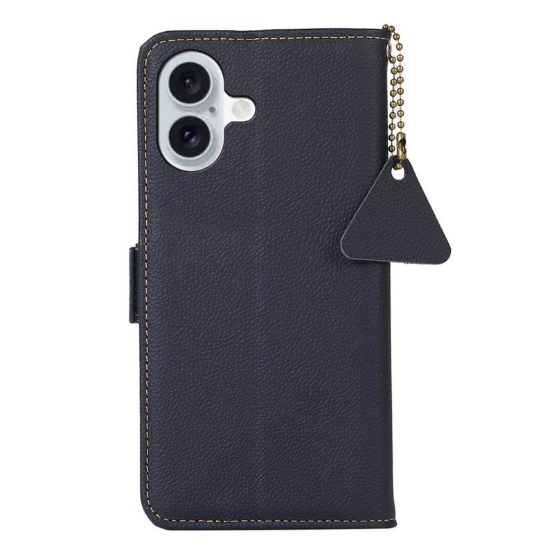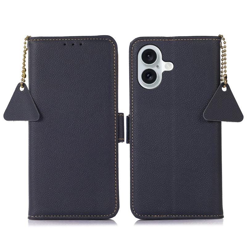 - Estojo de couro tipo carteira com camada de bloqueio de RFID para iPhone 16 Plus