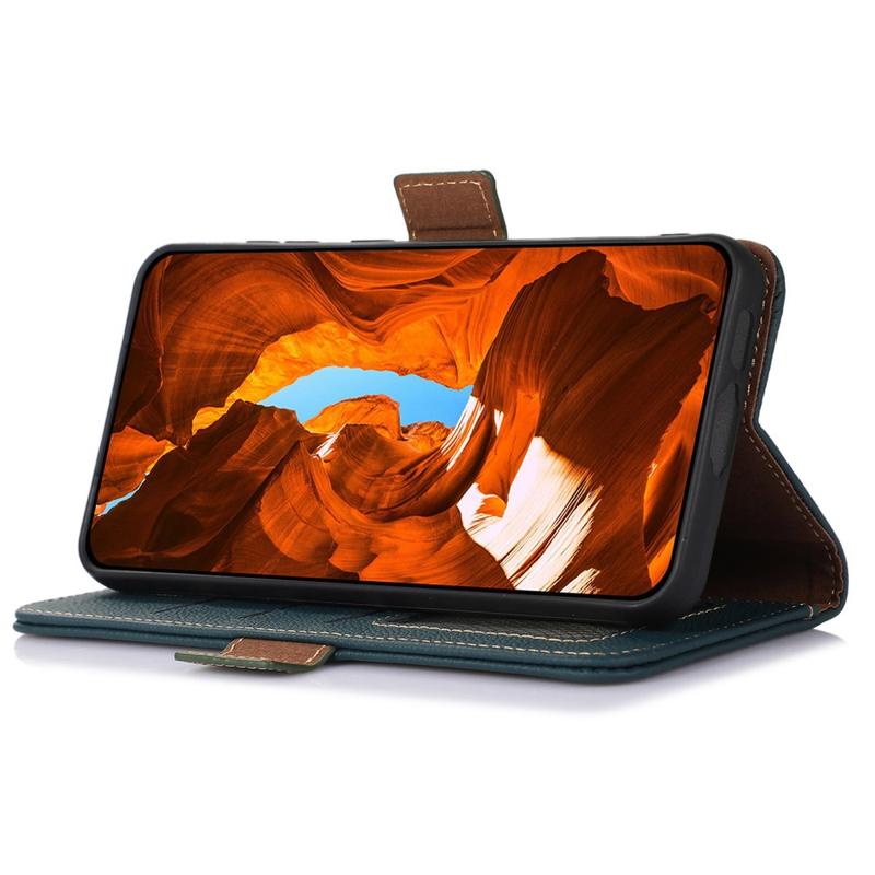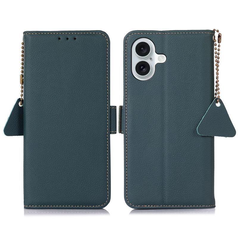 - Estojo de couro tipo carteira com camada de bloqueio de RFID para iPhone 16 Plus