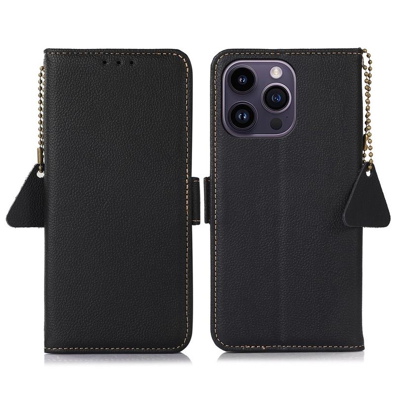 - Estojo de couro tipo carteira com camada de bloqueio de RFID para iPhone 16 Pro Max
