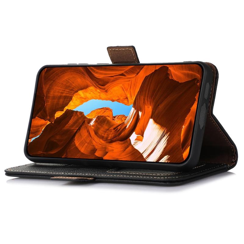 - Material TPU e couro genuíno foram usados para fazer esta carteira de alta qualidade para iPhone 16 Pro Max