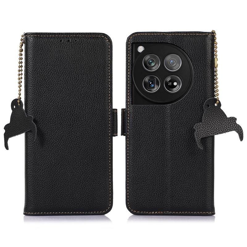 - Bolsa tipo carteira em pele genuína de alta qualidade para o OnePlus 12