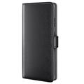 Uma bolsa de pele estilo carteira de alta qualidade para o seu Samsung Galaxy S23 5G. Dê ao seu telemóvel um ar sofisticado, enquanto o mantém seguro de riscos e danos comuns. Esta bolsa de pele tipo carteira multifuncional tem ranhuras para cartões e um bolso maior para notas. Além disso, a capa de pele genuína transforma-se em suporte para que possa usar o telemóvel em mãos livres, e o seu recorte frontal permite falar, mesmo com a bolsa fechada.