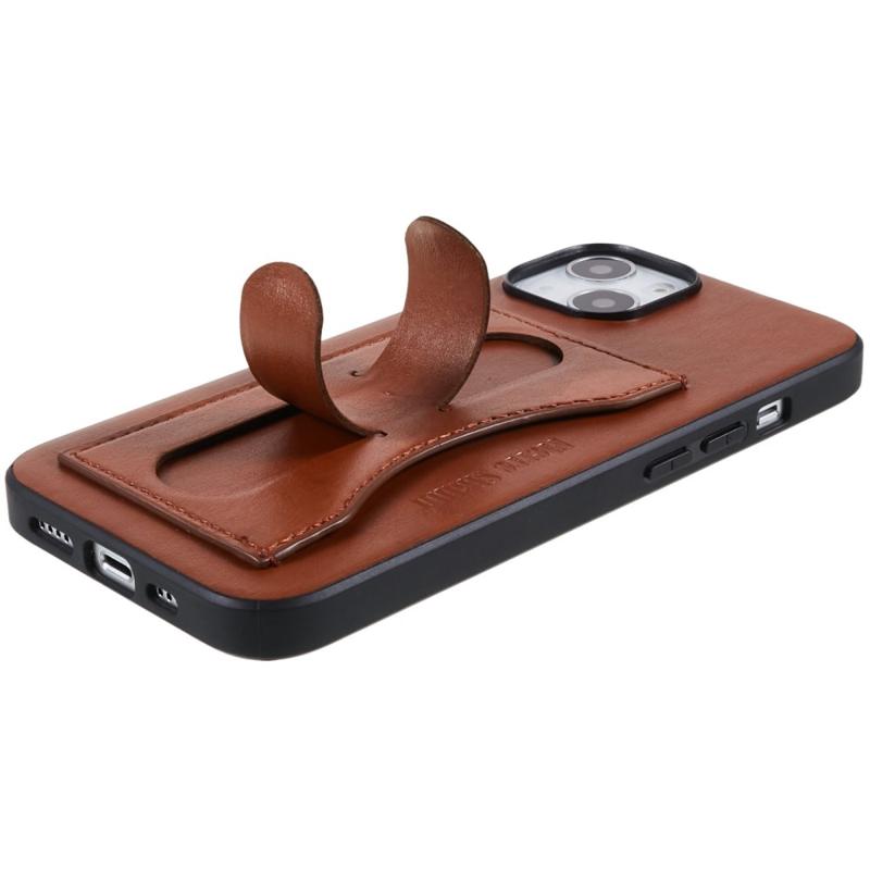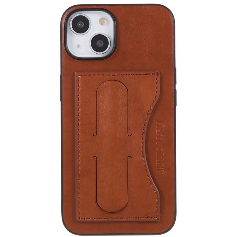 Estojo traseiro design Kickstand para iPhone 14 Plus PU revestido de couro TPU capa protetora para telefone com compartimento para cartão