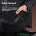 - A bolsa flip pode ser dobrada num suporte para observação de multimédia