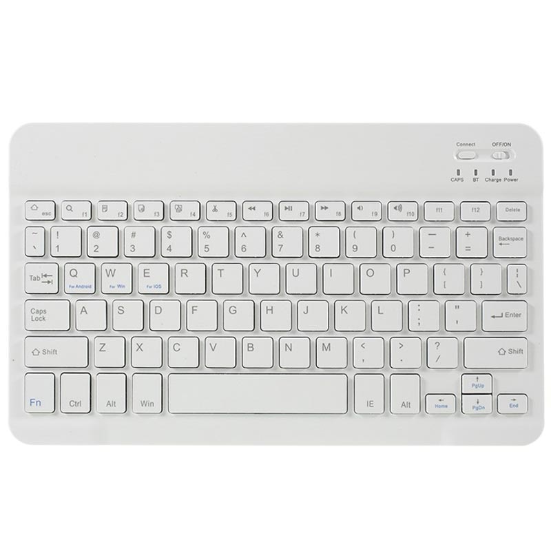 - O teclado Bluetooth possui um layout QWERTY e uma bateria recarregável embutida