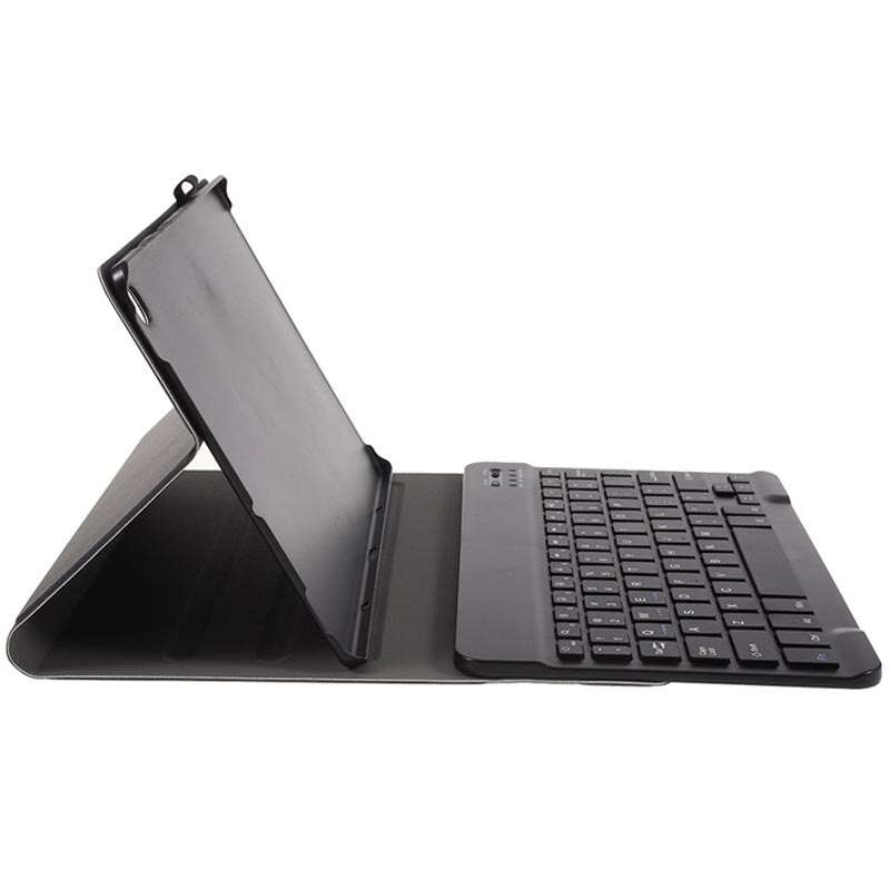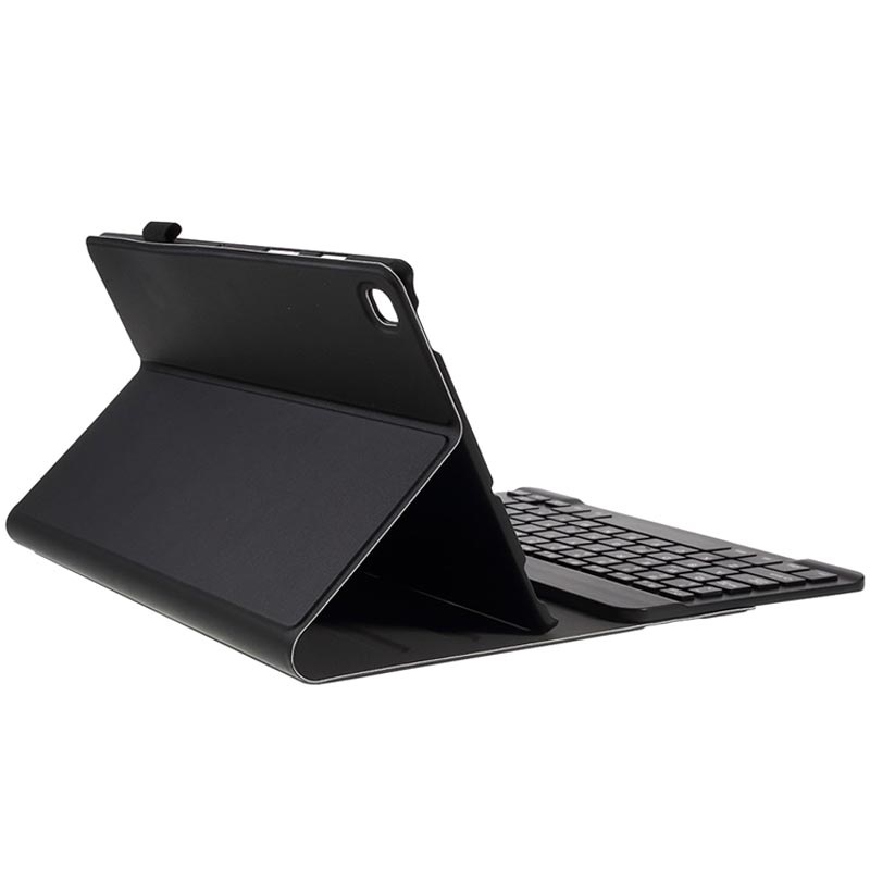 - Uma elegante capa dobrável com um teclado Bluetooth para Samsung Galaxy Tab S5e