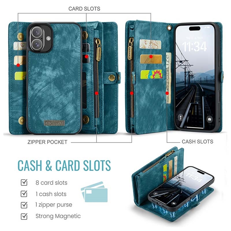 Torne o seu dia mais eficiente com a bolsa tipo carteira 2 em 1 da Caseme 008 para iPhone 16 Plus.