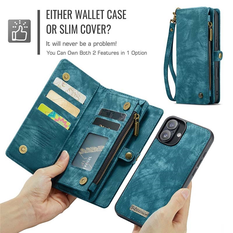 Bolsa tipo Carteira 2 em 1 Caseme 008 Multifuncional para iPhone 16 Plus