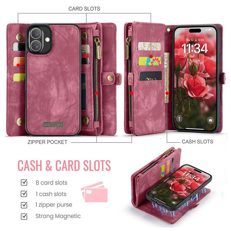 Bolsa tipo Carteira 2 em 1 Caseme 008 Multifuncional para iPhone 16 Plus