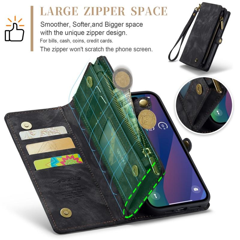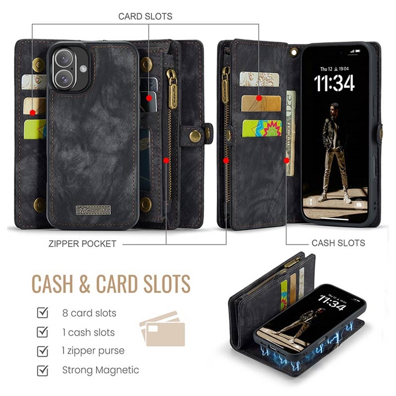 Bolsa tipo Carteira 2 em 1 Caseme 008 Multifuncional para iPhone 16 Plus