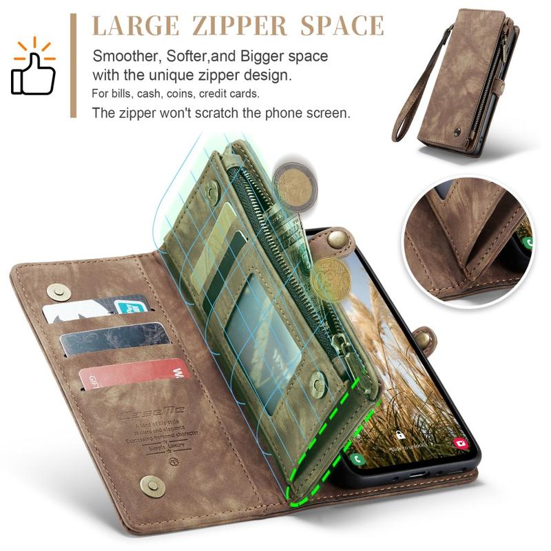 Torne o seu dia mais eficiente com a bolsa tipo carteira 2 em 1 da Caseme 008 para Samsung Galaxy A35.