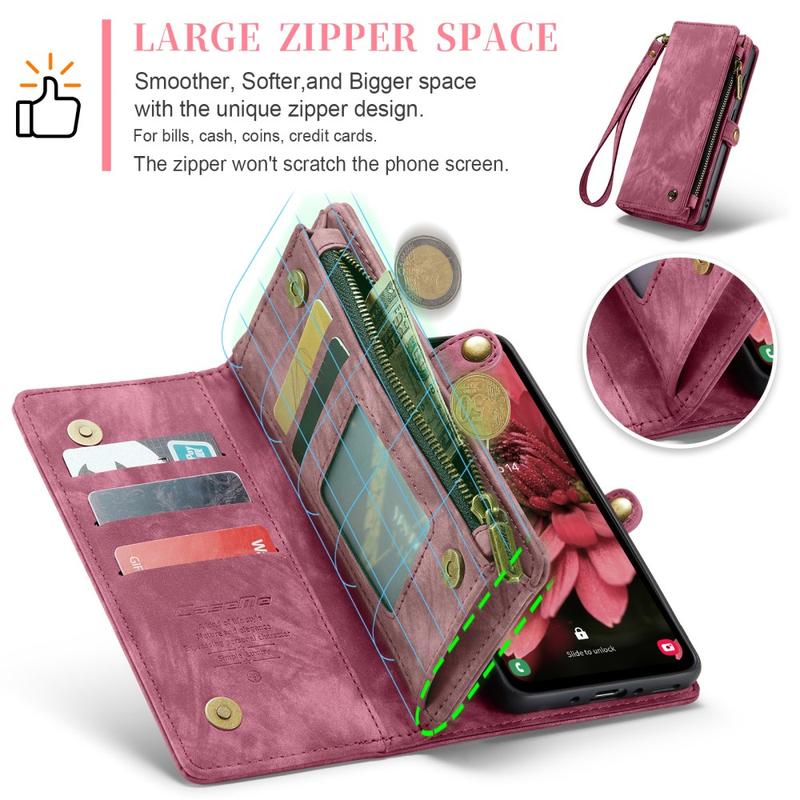 Torne o seu dia mais eficiente com a bolsa tipo carteira 2 em 1 da Caseme 008 para Samsung Galaxy A35.