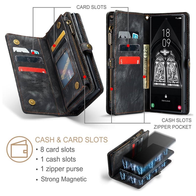 Bolsa tipo Carteira 2-em-1 Caseme 008 Multifuncional para Samsung Galaxy S23 Ultra 5G - Preto