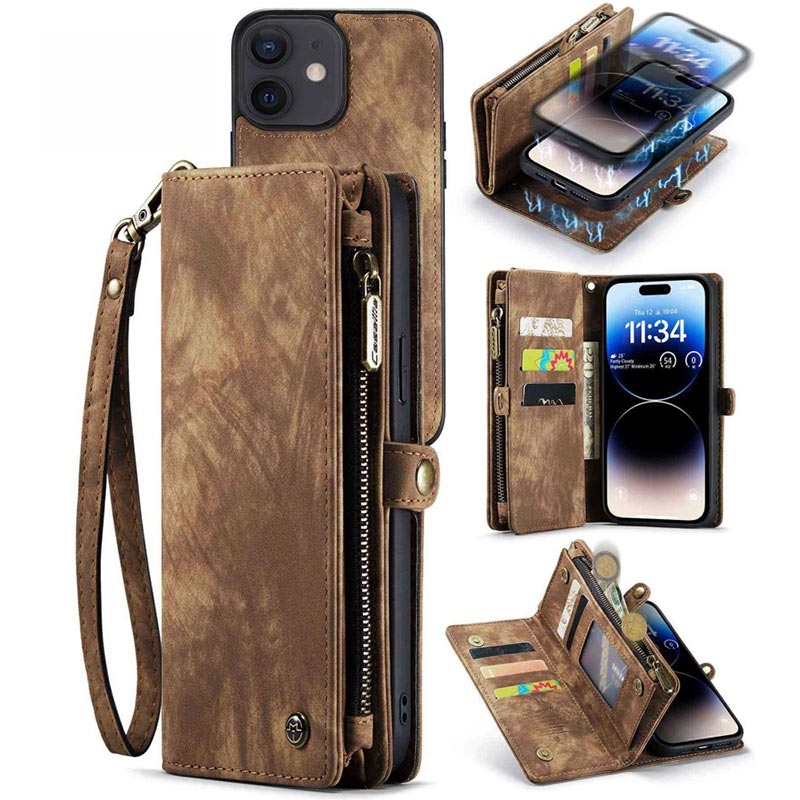 - Bolsa tipo carteira Caseme 2-em-1 para iPhone 12, iPhone 12 Pro