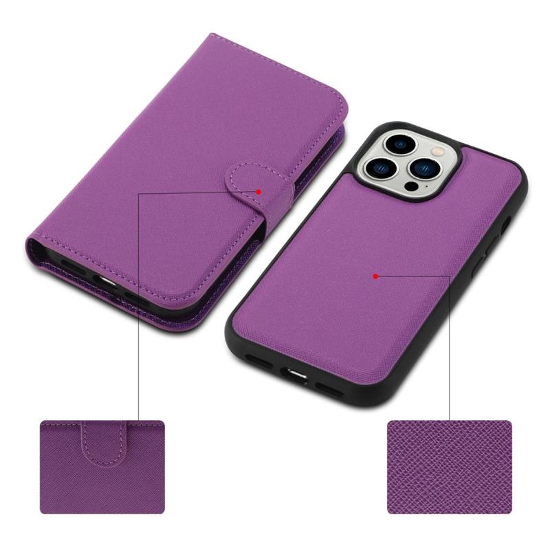 Capa traseira removível em TPU para iPhone 14 Pro com textura cruzada em couro PU capa à prova de queda com suporte flip carteira