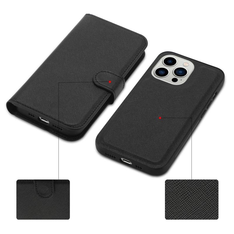 Capa traseira removível em TPU para iPhone 14 Pro com textura cruzada em couro PU capa à prova de queda com suporte flip carteira