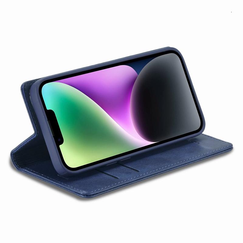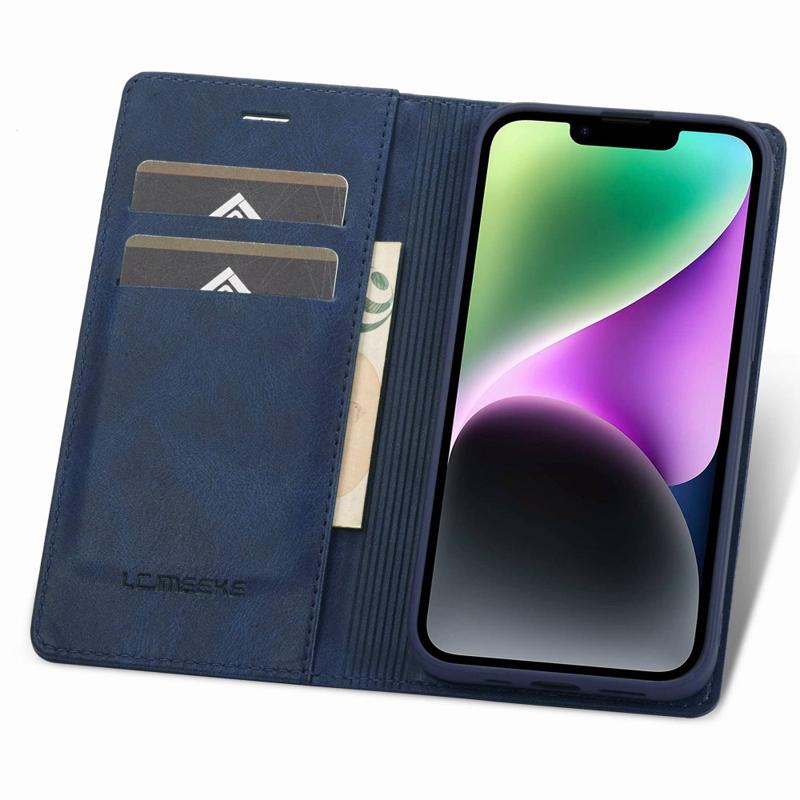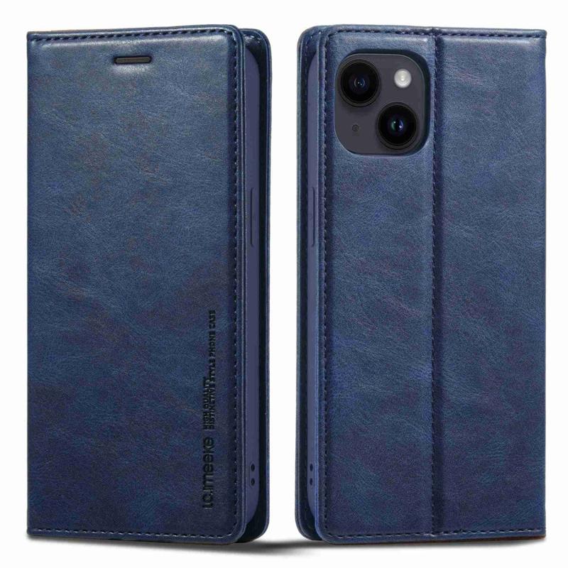 Carteira LC.IMEEKE para iPhone 14 com suporte de bloqueio de RFID em couro PU capa protetora de telefone magnética auto-absorvida